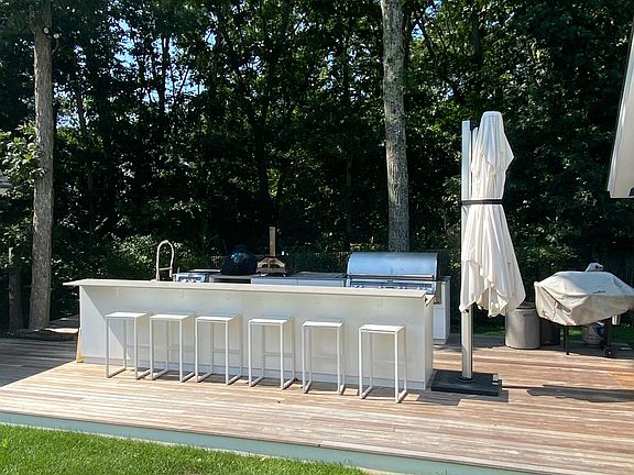 16 Royal StreetClean, bright and meticulously maintained, this Village Fringe home is absolutely stunning. With interiors by Sissy & Marley Interior Design, Lutron lighting, and Sonos throughout, the house has been elevated to perfection. Upon entry, the dramatic cathedral-ceilinged living room with a fireplace is flooded with Western sunlight. The adjoining stylish, open concept, Scavolini kitchen and dining area also receive tremendous natural light. A spacious first-floor primary bedroom suite is elegantly appointed. Upstairs are two sets of Jack & Jill bedrooms, four bedrooms in total, and laundry. The lower level consists of a bedroom, full bath, media room, recreation area and laundry center. Outdoors, expansive mahogany decking looks out over a heated Gunite pool with an automatic pool cover, lush irrigated lawn, state-of-the-art outdoor kitchen, custom pool house and storage cabana. Ideally located halfway between East Hampton Village and Amagansett.