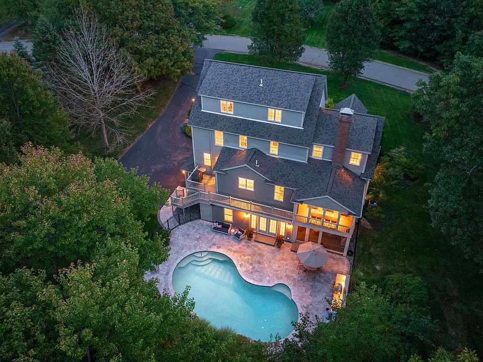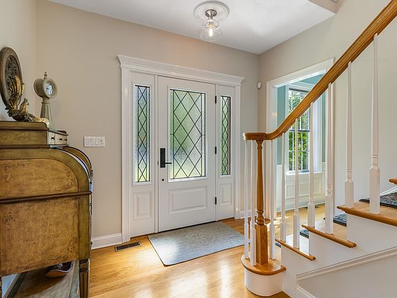 Set on a private 2-acre wooded lot in one of Newfields’ most desirable neighborhoods, this colonial offers timeless craftsmanship with over $250,000 in updates. It is a home as functional as it is unforgettable. Arrive to gorgeous landscaping and new exterior lighting, then step inside to gleaming oak floors and a graceful winding staircase. The main level has an open flow ideal for entertaining, with a large kitchen featuring a leathered granite island, wine fridge, pantry, and modern lighting. The living areas include a cozy fireplace and integrated surround sound.The 2nd floor offers a primary suite with upgraded shower, jetted tub, and two walk-in closets - alongside 2 additional bedrooms.The third floor expands the living space with two more bedrooms, a ¾ bath, and attic storage. The finished walk-out basement provides a complete town-approved in-law suite ADU with kitchen and 3/4 bath - perfect for multi-generational living or guests. Step outside to resort-style living: an in-ground gunite pool with travertine pavers, outdoor kitchen, 2 screened porches, and surround sound - creating an ideal space for gatherings. Peace of mind comes with recent updates: a newly shingled roof, on-demand generator, oil furnace, central A/C, tankless hot water heater, pool pump, wireless access points, Kinetico reverse osmosis system and water softener, and more. This location offers easy access to Exeter, Portsmouth, Route 101, and I-95 - blending convenience with a secluded setting.