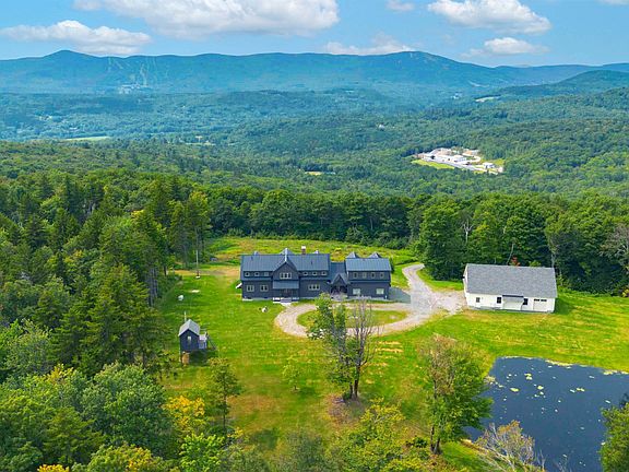 Ultimate Mountain Playground. Experience unparalleled luxury and adventure with this professionally designed and meticulously decorated mountain retreat. Boasting breathtaking views. Unmatched panoramic vistas to the west, including stunning sunsets and direct views of Haystack and Mount Snow. Enjoy a grand living room with a massive fieldstone fireplace, and a second fireplace in the lower-level family room. The open concept design flows seamlessly through multiple living areas. Entertainment & Recreation: A fully-equipped 12-seat movie theatre, a pool table, and a modern bar w/ a wine cooler and beverage cooler ensure endless entertainment options. A zip line, stone patio with a large outdoor fireplace, hot tub, and two scenic ponds offer outdoor fun and relaxation. Luxurious Accommodations: Five ensuite bedrooms, including a sumptuous master suite with a soaking tub, walk-in closet, and private office. There’s also a charming bunk room suite above the garage. Gourmet Kitchen: A chef’s dream with top-of-the-line appliances and a spacious dining area for hosting guests. Additional Features: Large entry with built-ins, stone floors, covered front porch, multi-level decks, and a 50x30 barn with potential for customization. An attached 2-car garage and direct VAST access via your private trail round out the practical amenities. Outdoor Adventure: The property includes direct access to snowshoeing, biking, and hiking trails, stone walls, and a rich natural landscape.