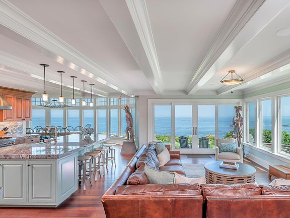Exquisitely renovated in 2016 and architecturally distinct, this coastal retreat rests on 357 feet of Maine's rocky coast line. Fully re-imagined by Waltman Architectural Design the residence is beautifully appointed with ocean views from nearly every room. The dining room offers bold ocean views through the curved bank of windows. The gourmet kitchen is equipped with top-of-the-line amenities including a Thermador appliance package, full height granite backsplash, tiger maple cabinetry and expansive island perfect for gathering in this serene space. The luxurious primary suite is a haven within the home. It features cathedral ceilings, allowing for an airy and spacious feel, as well as sliders to a private balcony. The spa-like bathroom offers a custom tile shower, an oversized vanity and custom built-ins. Allow your guests to visit comfortably with an additional en-suite bedroom above the garage and an in-law suite with full kitchen in the daylight, walk-out lower level. Extraordinary outdoor space is highlighted by wraparound decks, patios, and landscaping allowing for idyllic seaside entertainment. The newly installed engineered seawall has been designed to protect your investment for years to come. Along a highly coveted stretch of coast just south of Portland, Cape Elizabeth offers some of the finest properties in all of Maine. Minutes to various state parks, beaches, and Portland's world-class food and beverage scene, this is an exciting opportunity to soak up the very best of New England.