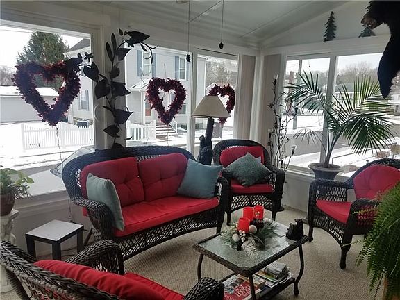 Move in Ready!! Front room is a Champion Sunroom all year round room. Newer windows throughout house. Pellet stove and refrigerator does not stay. Decorative bear and decorative light pole outside does not stay. 3rd bedroom is captive. Large closets upstairs and full basement for storage. Fenced in back yard. First floor bathroom has a walk in shower. Second floor bathroom has a tub. 100 amp electric service.