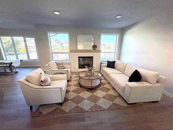 Step into this brand new 2 storey home presented by Falcon Homes 2025 large volume builder of the year. A picture perfect retreat boasting three generous bedrooms and an array of modern features designed to offer comfort and style. The heart of this home is the inviting open plan living space where an elegant electric fireplace creates cozy ambiance. The main floor dazzles with 9 foot ceilings and durable vinyl plank flooring. Culinary delights await in the kitchen, where a large island takes center stage, complimented by quartz countertops, loads of cabinetry that are a blend of chic white with a striking wood accent island. The adjacent dining area opens onto a sizable deck. Upstairs the bonus room provides a versatile space for relaxation or play, while the master suite is a true haven with a tiled shower and double sinks in the ensuite. The convenience of upper floor laundry adds to the thoughtful design. With parking for two vehicles, this residence is ready to welcome your family. Basement is awaiting your personal ideas. Yearly HOA fee covers extra lighting and park maintenance within the area.