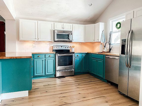 Enter this spacious gorgeous home through the front door into the foyer. You will view the living room,master bedroom,one of three full bathrooms and the stairway to upstairs bedrooms. Walk through the living room into the dining room,that features new white oak wood floors,then into the beautiful kitchen,that features butcher block counter tops. You will love the master bedroom with double closets and master bathroom. Off the hallway is a large laundry room with cabinets and extra storage. Then up the entry stairs into three additional bedrooms. You will also find a private stairway to the fifth bedroom,office,playroom,etc. This home has amazing space for any family. Exit the breakfast nook off of the kitchen through the back entrance onto a large wood deck and then a concrete patio. Sit out on the deck and relax and enjoy this move in condition home. Walking distance to the coffee shop,restaurants,movie theater,library,playground,pool,bike path etc. This property will not disappoint!