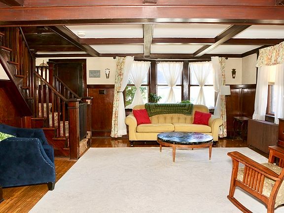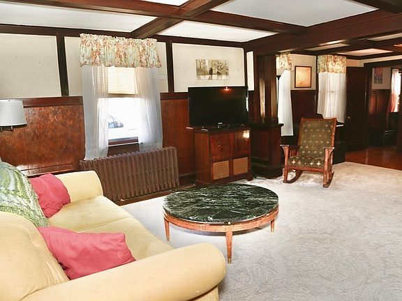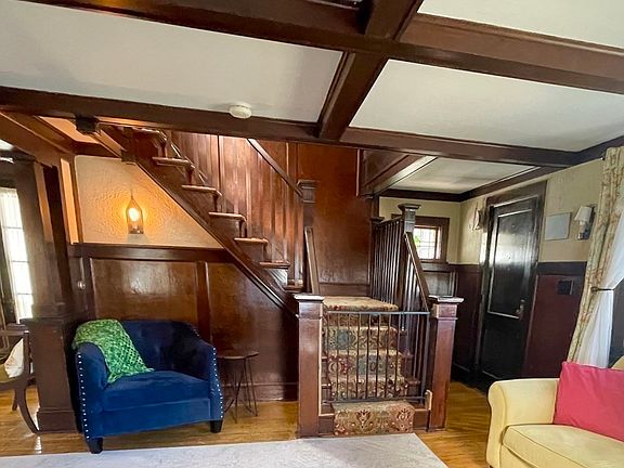 Charming, updated colonial with original character and details! This home greets visitors with an enclosed front entry. Step inside and you will immediately see the charm of yesteryear with gorgeous staircase and open floor plan between living room and dining room with beautiful, coffered ceilings. Sunny and bright kitchen has been updated, large first floor bedroom. Freshly painted oversized heated sunroom loaded with windows and brand-new carpet, perfect for a home office. A spacious mudroom and laundry room off the kitchen with a back entry that leads out to a nice deck, great size for a BBQ grill and table set. 2nd floor has 2 large bedrooms and an oversized updated bathroom. Newer one car garage, updated 200 amp electrical, updated water heater and updated gas furnace - this home is a must see!