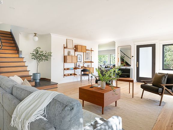 Designed by Portland's own renowned architect, Roscoe Hemenway, the H.S. Hudson house is the soft vanilla swirl of Southwest Portland. This sweet treat is an architecturally significant & rare Portland Art Moderne. High ceilings and high vibes from the sun soaked spaces- She's all sunshine, sweeping Mt Hood views, curves and custom upgrades, a gen-u-ine show stopper. Cool, calm, comfort in the luxe, large living space with fireplace & french doors to the rare SW flat backyard. Hang next to the chef in the spacious den or stretch your legs & cooking skills in the generous kitchen, complete with butlers pantry. With two bonus spaces, there's multiple WFH options or extra cozy spaces to do a crossword or puzzle in peace. Whether you're sippin' coffee on your primary patio & watching the sun rise over Mt Hood or gathering for a meal on the dining room terrace, this loving cup is ready to host friends, family, or just yourself. Ainsworth school district, OHSU adjacent and quick zip to downtown, you're in the thick of it while feeling worlds away. [Home Energy Score = 2. HES Report at https://rpt.greenbuildingregistry.com/hes/OR10115040]