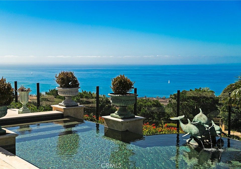 Perched at the top of guard-gated Pelican Crest on a premier wraparound lot, this custom coastal estate delivers unobstructed panoramas of the Pacific, Catalina, Newport Harbor, and white-water—sunrises and sunsets alike. Designed for modern indoor/outdoor living, the ~5,268 SF residence offers 4 ensuite bedrooms + office/optional 5th bedroom, soaring volumes, marble finishes, custom lighting, and floorplan that flows from the family room with wet bar to the chef’s kitchen and view terraces. The gourmet kitchen is anchored by Calacatta Gold marble, walnut cabinetry, a La Cornue French range with custom hood, twin glass-door Sub-Zero refrigerators, a walk-in wet bar, and a built-in Miele coffee system—crafted for effortless entertaining. Bi-fold doors dissolve the boundary to the outdoors where a private pool & spa frame the coastline. A serene ocean-oriented primary retreat features a sitting area with custom fireplace mantle, dual boutique-scale closets, and a hotel-inspired bath highlighted by a stand-alone tub. Two main-level bedroom suites enhance livability for multi-generational needs or VIP guests. Outdoors, layered terraces, fire features, and lush landscaping create a private resort setting; inside, multiple fireplaces, an open floor plan, dedicated laundry, and 3-car parking complete the offering. The community has security & guard services and is just moments from Pelican Hill Resort & Golf, Crystal Cove beaches, and Fashion Island dining/shopping.