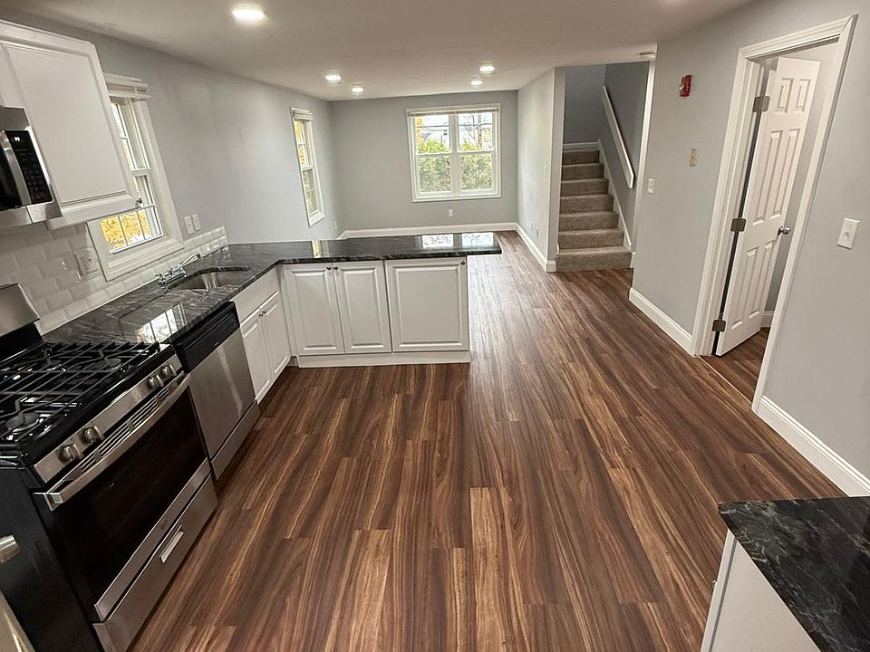 Off street parkingGranite countertopsVinyl flooringKitchen islandStainless steel appliances