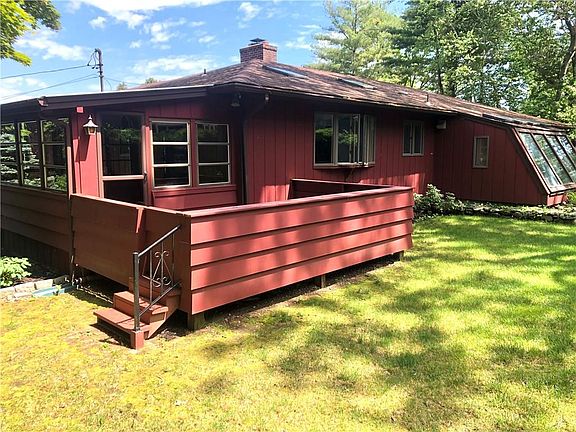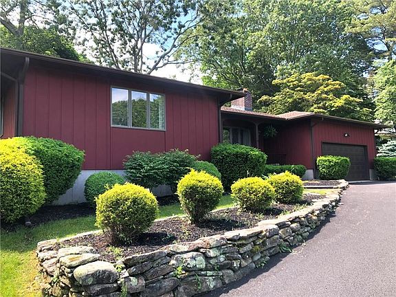 This charming Ranch style home is nestled in a picturesque neighborhood 2 miles from historic downtown Westerly. It boasts a lovely new winding driveway surrounded by lush greenery that ensures privacy on a hillside setting. The home features spacious rooms including 23'x14 living room/family room with abundance of natural light, stunning floor to ceiling granite fireplace, dining room perfect for hosting intimate dinners or large celebrations. The spacious 15'x20' Master has 2 closets & full bath. Another full bath and 2 bedrooms complete this section of the home. The eat-in kitchen/dining area boasts oak cabinets, a peninsula, new laminate flooring and lots of room for company. The breezeway w/entrance from front & back yard- a perfect mud room. The home has newer mechanics including a Trane heating/cooling system, skylights, full attic-insulation installed by RISE, roof & interior painting. Sunporch and breezeway not included in square footage.