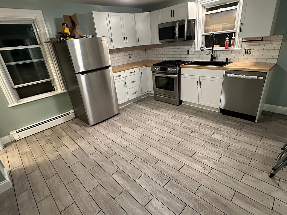 Newly renovated apartment with new electrical and plumbing. New stainless steel appliances. Quiet neighborhood close to shopping centers and highway. Owner pays water and sewer. Tenant responsible for electricity and gas