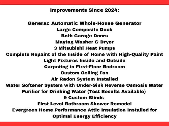 This home has been deeply cherished and thoughtfully upgraded, it features over 80,000 dollars in upgrades: a full-home automatic Generac generator ensures peace of mind in any season and three efficient Mitsubishi heat-pumps deliver comfort. Every detail from the newer roof to the extra insulation, from the accessible first-floor shower to the composite deck has been tastefully upgraded. You won't need to lift a finger! You move in, breathe deeply, and simply live.