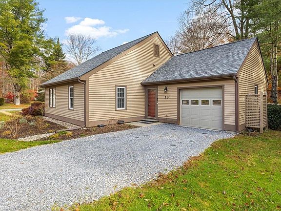 Cheerful, convenient, and private are words best used to describe 16 Slate Circle in the charming Manchester East community. This completely updated condo offers just over 1,000 square feet of immaculate single-level living, close to the many amenities of Manchester while feeling tucked away in a peaceful wooded setting. The bright and functional layout features a spacious living room, an efficient kitchen with ample storage, and two comfortable bedrooms with a full bath. An attached, insulated garage adds value and convenience for year-round Vermont living. Sliding doors lead to a new private deck, perfect for morning coffee, outdoor dining, or simply relaxing in the quiet surroundings. With exterior maintenance, snow removal, and landscaping handled by the association, life here is truly low-maintenance, for many years to come. Every surface, appliance, and mechanical system has been updated. In 2022: New furnace and mini splits. In 2023: new attic insulation, lighting, ceiling fans, paint, new bathroom with radiant heat, custom closets, stove. In 2024: new luxury vinyl tile wood flooring, window blinds, water heater, washer and dryer, 2nd fridge in garage.
