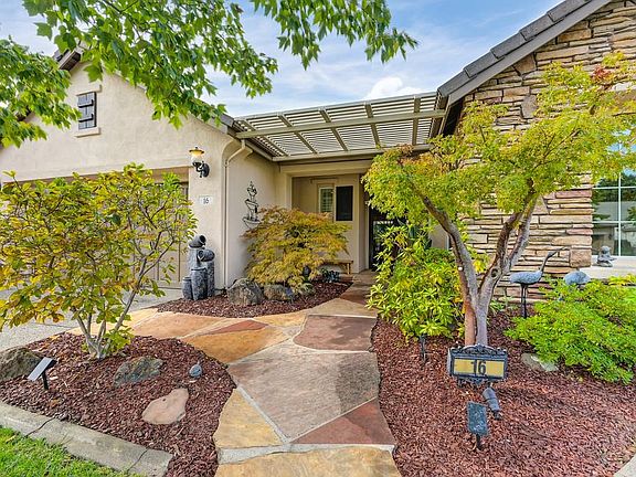An entertainer's dream in the premiere 55+ active adult gated resort community of Heritage Park. This desirable light-filled open-concept home offers 2 beds/2 baths in 1722 sf. A front patio and a gracious foyer lead to a spacious living/dining room w/ engineered wood floors, a gas fireplace and large windows with views of the backyard. The eat-in kitchen w/ many windows to the front yard includes granite tile counters, breakfast bar, large island, quality appliances and loads of cabinets for ample storage including the laundry room and 2 car garage. The guest bedroom and bath are away from the living areas and the main bedroom is secluded in the back w/ a large en-suite bathroom and walk-in closet. The front and backyard landscape is well-designed to be low maintenance w/ seasonal color and has beautiful trees which offer shade and privacy. The back covered patio w/ extended pergola invites al fresco dining w/ family and friends or relaxing w/ a glass of wine. Heritage Park's world-class amenities include a 25,000 sf clubhouse w/ indoor/outdoor pool, a restaurant, ballroom, library, fitness center, aerobics room and 5 one-acre parks for activities like gardening, biking, walking, water volleyball, bocce ball, tennis and pickle ball. A friendly and welcoming community awaits you!