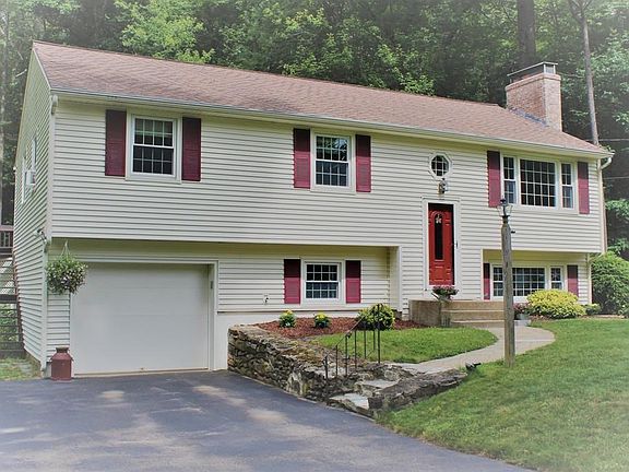 Don't miss your chance to own this beautiful home in desirable Sturbridge, MA! Homeowner pride shows throughout this 4 bedroom, 2 bathroom Raised Ranch. The natural flow of this home gives you an open concept feel with some separation of rooms. Endless opportunity to adjust the floor-plan to suit your needs. Gorgeous gas stove in the family room with vaulted ceilings and a large bay window. Recent upgrades include two brand new brick fireplaces with chimney. Freshly painted rooms and a new carpet in the den. The main bathroom was updated in 2017 with a full tile shower and tub. Newer roof, windows & siding along with landscaping for a low maintenance exterior. Enjoy peace and quiet on this dead end road with a flowing creak right in your backyard. Relax on the large deck or entertain down below with a covered patio that stretches the length of the home. Easy access to the MA Pike, Rt 20 & 84. Plenty of dining and entertainment with historic attractions places near by.
