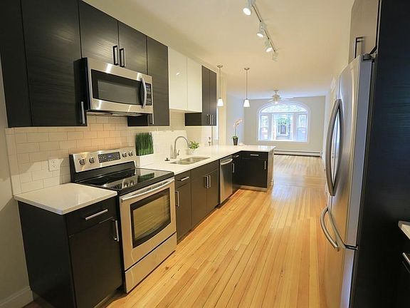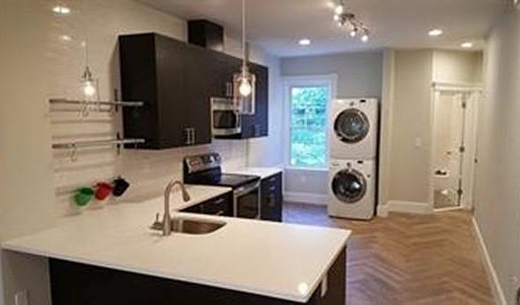 Available 9/1/2021. Apt 2. Exquisite 4 Bed and 2 Bath apartment located in the beautiful tree lined neighborhood of Strathmore Rd. This renovated apartment features 9'+ ceiling height, hardwood floors, subway tile, exposed brick, large south facing deck, new high efficiency mini split systems (5 x AC/Heating zones), high efficiency boiler, hot water heating system, ceiling fan in living room, LED recessed lighting, all new energy star appliances including in-unit washer and dryer. This modern Victorian styled apartment nestles behind Beacon St. in a quaint brownstone neighborhood near the recently updated Waldstein Park (aka Dean Park featuring a large playground, multiple tennis courts, basketball court, and a baseball field). In an urban environment of Cleveland Circle and Washington Square, the apartment is conveniently located near public transportation, both C and D green lines, super market, restaurants, pharmacies, and much more. Parking is available for $200/space/month Parking is available for $200/month.