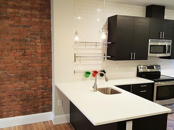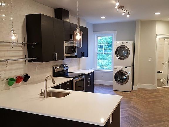 Available July 1st. Exquisite 4 Bed and 2 Bath apartment located in the beautiful tree lined neighborhood of Strathmore Rd. This renovated apartment features 9'+ ceiling height, hardwood floors, subway tile, exposed brick, large south facing deck, new high efficiency mini split systems (5 x AC/Heating zones), high efficiency boiler, hot water heating system, ceiling fan in living room, LED recessed lighting, all new energy star appliances including in-unit washer and dryer. This modern Victorian styled apartment nestles behind Beacon St. in a quaint brownstone neighborhood near the recently updated Waldstein Park (aka Dean Park featuring a large playground, multiple tennis courts, basketball court, and a baseball field). In an urban environment of Cleveland Circle and Washington Square, the apartment is conveniently located near public transportation, both C and D green lines, super market, restaurants, pharmacies, and much more. Parking is available for $150/space/month