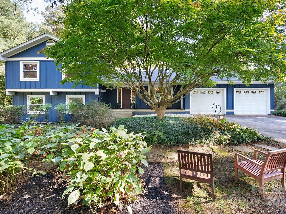 Nestled on a quiet dead-end street in Haw Creek, this spacious tri-level home blends privacy with convenience. A mature Japanese maple, mulched garden beds, and a welcoming front patio set the tone. Inside, the foyer opens to an airy living, dining, and cook’s kitchen with soft-close cabinetry, pull-out pantry shelves, quartz counters, tile backsplash, pendant lighting, and a butcher-block island with counter-height seating. A gas range and hanging pot rack simplify meal prep, and the dining area with built-in sideboard flows to a glass-enclosed, three-season sunroom with vaulted ceiling. Upstairs are three generous bedrooms, including a large primary with a dressing hall of closets and an updated ensuite bathroom with tiled, glass-enclosed shower. The lower level offers a second living area anchored by a floor-to-ceiling stone fireplace, a flexible bonus/gym/guest room, a full bath with corner soaking tub, and a laundry room with tankless water heater. Outdoors, enjoy an expansive rear deck, fenced backyard, and an oversized two-car garage with generous workshop space. Enjoy all Haw Creek offers—Masters Park for wooded trails and green space and “Downtown Haw Creek”, where you’ll find casual dining, cozy coffee spots, and laid-back neighborhood bars. Minutes away from Downtown Asheville and the Blue Ridge Parkway!