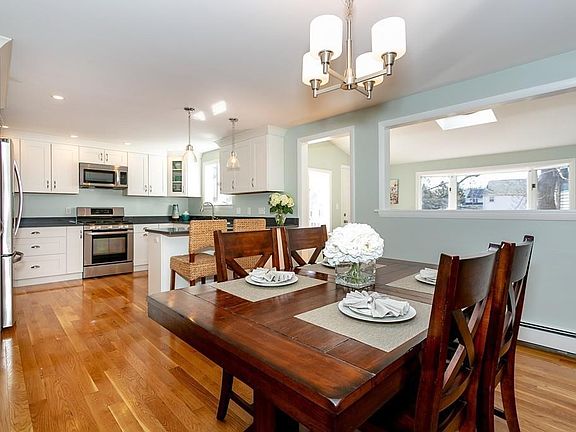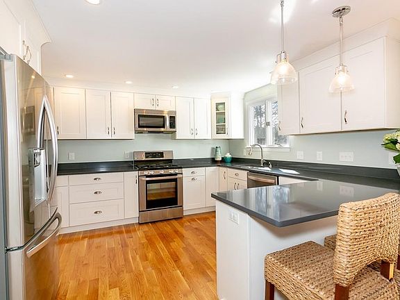Move right into this beautifully renovated home in one of Needhams most sought after neighborhoods. This fantastic home, set on nearly 1/4 of an acre, is tucked away on a cul-de-sac yet just minutes from the train, grocery stores, restaurants, and the center of town! Featuring an updated kitchen with custom cabinets, stainless appliances and quartz countertops that opens to a spacious dining room. The sunroom, with a vaulted ceiling and skylights, offers many options including a playroom or additional entertaining space.The master bedroom has a walk-in and an enlarged double closet as well as an updated en-suite with marble-tile shower.You will love entertaining on the oversized deck, covered patio, and spacious yard. The walk-out lower level features a bright family room with fireplace, a large 4th bedroom (ideal for guests or office) and an updated bathroom. Tons of extras in this home including an oversized two-car garage, ample storage space, updated heating system, & central air!
