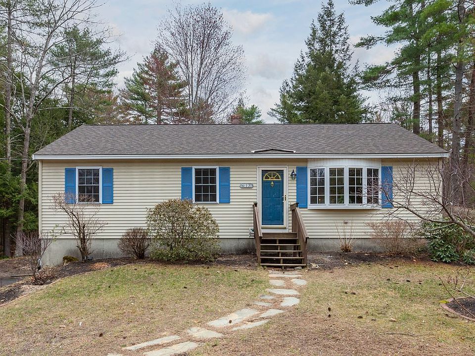Nestled within the quaint community of Wentworth Acres sits this charming ranch home beautifully sited on a tree lined lot in a country setting on a cul-de-sac road in low tax Moultonborough. The main floor includes an open concept kitchen w/ island and dining area which opens to a bright sunroom featuring knotty pine, sizable windows and leads to the attached deck, the living room is spacious and inviting boasting a picturesque bay window. Completing the main level are three bedrooms and a full bath. The lower level consists of a family room and a 3/4 bath. Wentworth Acres Subdivision includes approximately 28 acres of common land which abuts conservation land and Ledgy Pond, featuring walking trails that are enjoyed by nature seekers all four seasons. Location is ideal: the town beach and boat launch are about 6 miles away, close to local restaurants and shopping. Showings begin Saturday April 24, 2021 by appointment only.