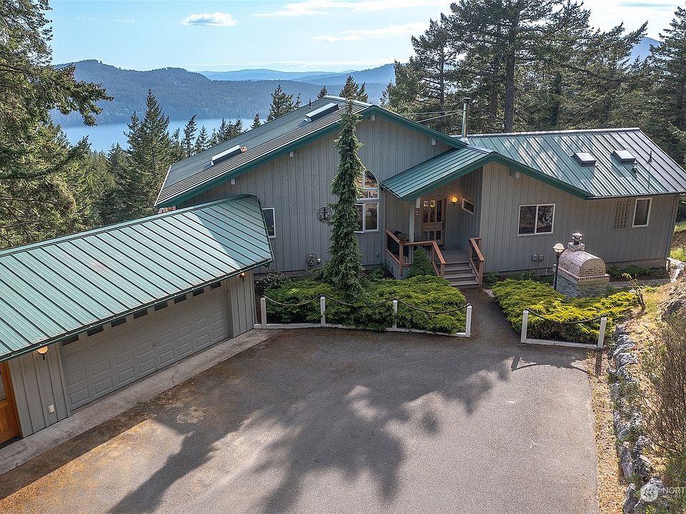 Spacious 3 bdrm/3bath home with southwest facing views! Main level with high ceilings & open concept living. Primary bdrm w/ en-suite bath on main level w/adjacent office space. Lots of storage in this well maintained home. Kitchen has a walk-in pantry w/a sink & wet bar in dining rm. Large laundry room which doubles as a & craft room. Attached two car garage plus shop accessed from the house. Finished lower level with 2 bdrms, kitchenette, dining rm, bonus room, and separate access. Enjoy the peaceful setting, decks for entertaining on each level & a new pizza oven! Fiber optic internet connected! Potential for bigger views. Prime location - only 1 mile from Moran State Park, minutes from the Village of Eastsound & close to Rosario Resort.