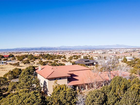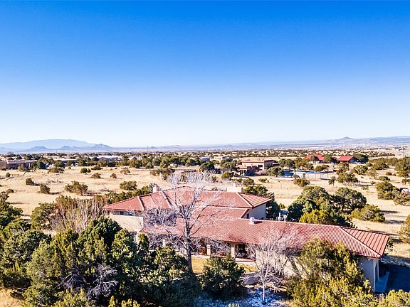 This charming house, sited at the end of the lane, is back on the market after recent updates that include a new tankless water heater, new windows in the living area and fresh paint throughout. This Spanish-style, two story home is on 2.5 acres and just 5.7 miles from the Santa Fe Plaza. This home has recently been remodeled by a published interior designer with new bathrooms, new SMEG appliances, new wide plank oak flooring downstairs and custom patterned hardwood floors in the kitchen and bedrooms/bathrooms upstairs. The majestic living area has 16 foot high ceilings, newly stained beams with custom corbels, and a grand staircase. A large fireplace and log cubby add to the stunning romance of the living space. Three bedrooms, two baths are on the second floor plus a bonus attic storage space and an enclosed porch to enjoy the gorgeous sunsets. This artist owned home features hand painted nichos in the entry way and a colorful built-in credenza in the dining room. The spacious kitchen was designed for entertaining with new quartz countertops, a walk-in pantry, and two large islands. There is a separate laundry area with a bonus refrigerator and an oversized, heated 2 car garage. Plenty of outdoor entertaining space with a large, covered portal off the kitchen with a grassy area and fountain to enjoy your privacy and nature. NO HOA. This delightful property with its artistic nuances is unique to Santa Fe while still keeping with the traditional Spanish style. Move-in ready, make it your full time, part time, vacation or income generating property!