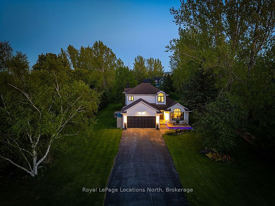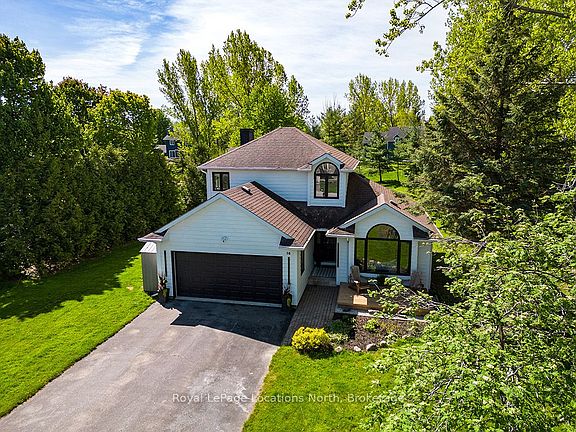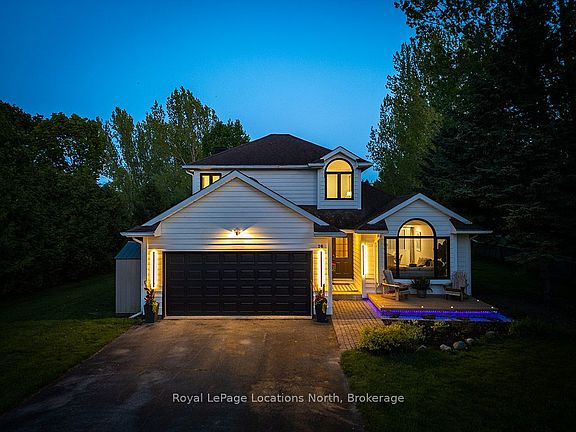 Now offered at a New Price - your chance to live the coveted Blue Mountain lifestyle awaits. Set on half an acre in the prestigious Mountain View Estates, this beautifully updated 3-bed, 2.5-bath home offers the ultimate four-season lifestyle - with the areas best outdoor amenities at your fingertips. Enjoy world-class skiing at Blue Mountain, unwind at Scandinave Spa, bike or hike the nearby trails, or paddle on Georgian Bay - all just minutes away. Conveniently located near Collingwood's shops and services, and a short drive to the charming town of Thornbury. This sun-drenched property boasts coveted south-west backyard exposure, flooding the home with natural light and offering beautiful afternoon sun. One of the rare few, this home includes deeded access to a private, forested 6-acre parcel with a meandering creek and peaceful trail system - perfect for scenic dog walks or cross-country skiing, right from your doorstep. Inside, a series of thoughtful renovations enhance comfort and style: new flooring, paint, trim, pot lights, water purification system, furnace - heat pump - water heater (2024), and a newly finished rec room in the lower level (2025). The main floor features a charming sitting area with an architecturally interesting window connecting to the formal dining space. At the back, the open-concept kitchen, eat-in nook, and cozy TV room are framed by walls of windows and walk-out access to the full length back deck - ideal for entertaining on warm summer nights. A powder room and laundry with garage access complete this level. Upstairs, the spacious primary retreat offers a walk-in closet and spa-like ensuite, while two additional bedrooms share a 4-piece bath. The lower level includes a newly finished recreation room plus an expansive unfinished area ready for your vision - or perfect as-is for storage. Whether you ski, bike, hike, or simply enjoy nature, this is a rare opportunity to live the best of the Blue Mountain lifestyle.