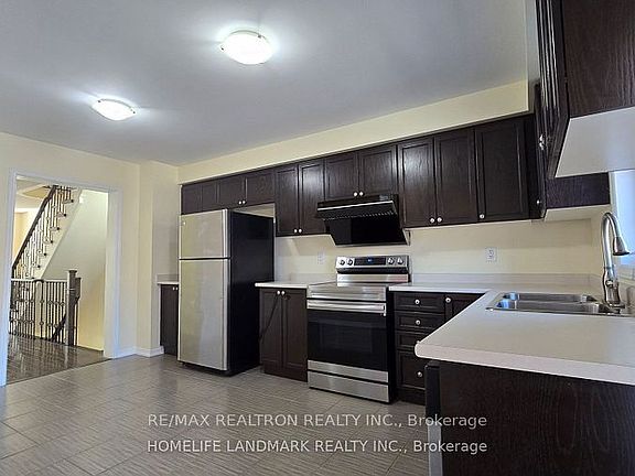 Stunning End Unit Freehold Townhouse in the Highly Sought-After Berczy Community . Spanning 1,712 sq. ft., this residence offers 3 bedrooms and 4 bathrooms. Newly installed hardwood floors (2021) enhance the bright and spacious open-concept layout. Enjoy direct access from the garage and a sunny, unobstructed view of the conservation area.The gourmet kitchen features an eat-in breakfast area with a walkout to the second-floor balcony. The master bedroom includes a luxurious 4-piece ensuite, a large closet, and access to a private third-floor balcony.Nestled in a quiet and peaceful neighborhood, this home is within walking distance of all amenities, including supermarkets and surrounding parks, offering a lifestyle of unmatched convenience. With transit at your doorstep, youre in the top school zone, serving Stonebridge P.S. and Pierre Elliott Trudeau H.S.