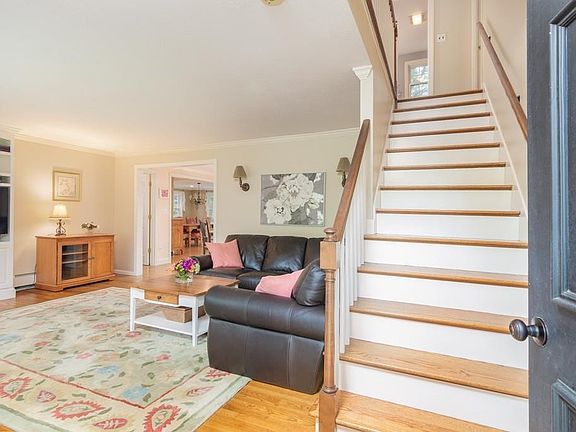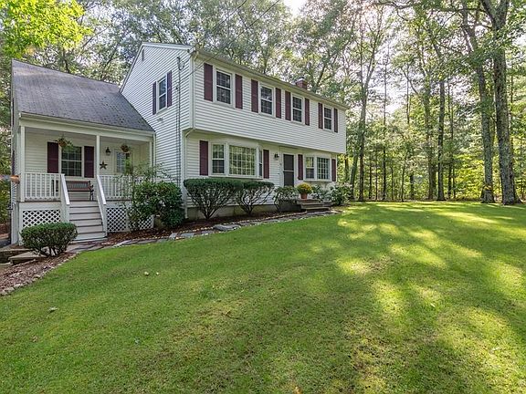 Beautifully updated & expanded colonial w/in a mile of everything: town center, elementary schools, playgrounds, library & commuter rail to Boston. Set back at the end of a tree-lined driveway, this warm & inviting home offers a serene & private setting, surrounded by nature. Relax on the sizable 3-season porch....the ideal spot to host family & friends to watch the Patriot's play this season! Or roast marshmallows by the fire pit in the backyard. Everything about this home feels comfortable & familiar; so many wonderful features & amenities including new septic system, a stunning chef's kitchen, updated baths, 1st fl laundry rm/mudrm, custom built-ins, gorgeous din rm w/ french doors to the back deck, tremendous storage, spacious bedrms upstairs, a fabulous master suite w/ walk-in closet & gorgeous bath & a wonderfully finished lower level that is perfect for young children & teens!