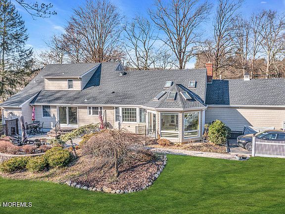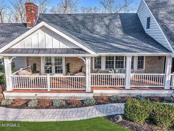This Incredible custom 5 bed, 3 bath expanded ranch is located in the desirable Clover Hill section of Colts Neck. Inviting large Trex porch will first grab your attention. Beautiful foyer with a spectacular brick floor welcomes you into the home. Features include hardwood floors through-out, custom built-ins, decorative moldings & 2 fireplaces. Designer eat-in kitchen with stainless steel appliances, rich wood cabinetry, granite counters & center island high-lighted by beautiful pendant lighting is a chef's dream. Home offers spectacular octagon shaped Great Room, attractive home office, timeless family room & elegant dining room. Primary bedroom features walk-in closet with fabulous primary bath. All bedrooms are gracious in size with plenty of closet space. Extraordinary full finished walk-out basement boasts of multiple entertainment areas with bar, wine storage & home gym. Home also has large 2 car garage, storage shed & generator. Living in Colts Neck offers proximity to gorgeous beaches, horse farms, parks & NYC transportation. Don't let this Colts Neck gem slip by you!