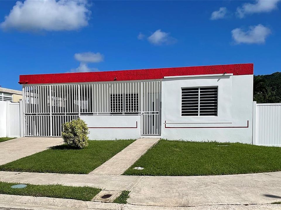 Beautiful single-story home, freshly painted and in excellent condition, featuring a charming green yard perfect for family gatherings or entertaining friends. This residence offers three comfortable bedrooms, two bathrooms, a laundry area, balcony, and an extended carport for added convenience. It includes a tankless water heater, two brand-new Inverter air conditioners, screens, storm shutters, and integrated security bars for your comfort and safety. Located in the peaceful and secure Los Flamboyanes community, which offers controlled access and 24-hour security. Enjoy great amenities such as playground, basketball court, and gazebo. Excellent location near PR-30, the Fernando "Rube" Hernandez Coliseum, the Evaristo "Varo" Roldan Stadium, major pharmaceutical companies, the University of Turabo, schools, and pharmacies. A unique opportunity to live comfortably in a safe and family-friendly environment!