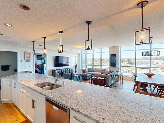 Beautifully appointed condoWonderful airy designOpen concept dining roomModern kitchenExpansive quartz islandUpgraded appliancesVisitor parking