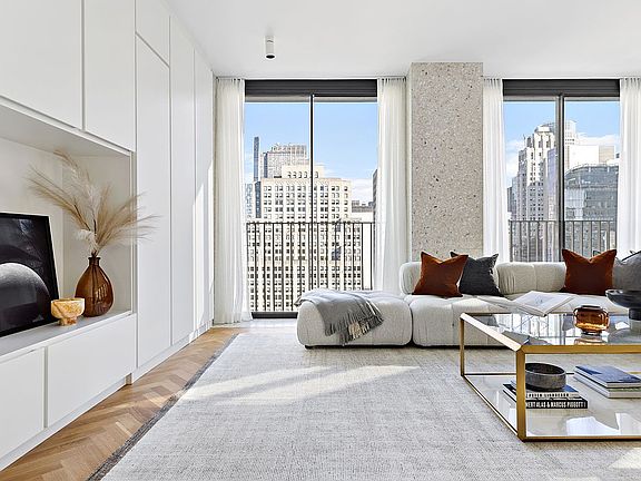 Located high above vibrant Bryant Park in the heart of New York City, and designed by Pritzker Prize-winning David Chipperfield, this floor-through two+ bedroom residence with a windowed home office boasts twenty-two floor-to-ceiling windows wrapping three exposures. At 1,882 square feet (174.8 sq. m.), this home offers an expansive layout with an abundance of natural light and incomparable views of Bryant Park and the Empire State Building through Vitrocsa sliding glass doors with Juliet balconies.