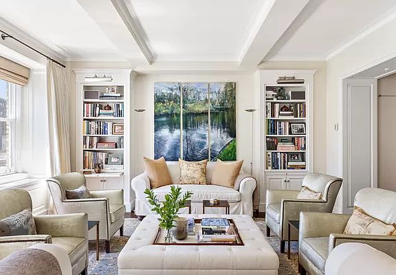 Don't miss this unique duplex apartment located in an architecturally significant pre-war co-op. Offering pre-war quality updated with contemporary finishes and functions, this one ticks all the boxes. Quiet, peaceful, sunny and bright, with high beamed ceilings, Southern exposure from every window, the apartment is located on a wonderful serene street and feels like a house in the middle of the Upper West Side. There is custom cabinetry throughout, and every surface or finish is in triple-mint condition. The large eat-in kitchen provides the place to hang out with the chef. With four to five bedrooms and five full baths, this apartment is steps from Central Park and exemplifies full-service, luxury living.