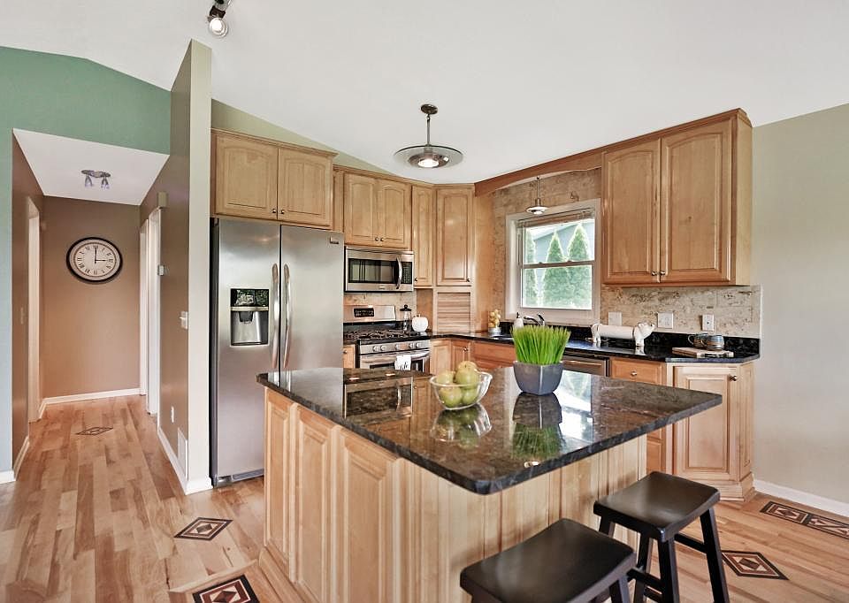 Completely renovated top to bottom. Home in highly sought after Golden lake neighborhood. Minutes to Golden Lk park, the beaches & pavillion. Canoe to Rice creek, Long lake & the Mississippi. Tons of bike/walk trails to library, shops, rest & more. Gorgeous private lot w/pond and lake views. Refinished yellow birch hardwood floors w/inlays, maple cab, granite, ss appl, gorgeous tiled back splash that also surrounds gas fireplace in L/room. Traverstine baths & floors. 6 panel doors, newer cpt & lights. Fresh neutral paint throughout. New roof & windows, garage door w/wi-fi opener. Too much to list- Home is immaculate.