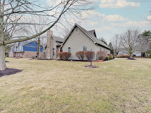 Welcome to this meticulously maintained custom ranch home in Carmel. Pride of home ownership shines through w/ updates/improvements galore. 3 BR 2.5 BA w/ finished basement on just under a half acre corner lot in charming Village Farms - you can't miss this! Stunning grand entry welcomes you with beveled glass french doors, aggregate marble flooring, crown molding and dramatic 12' ceilings found throughout home. Perfect for entertaining, the large gourmet kitchen w/ quartz countertops & breakfast nook flows into oversized living/dining area just steps from the private back deck. Family room has cozy fireplace, cathedral ceiling & custom new built in bookshelves. So much storage! - including walk up stairs to attic space. Some of the many improvements include: 2020 (water heater, built ins, washer/dryer, sump pump in crawl) - 2021 (complete renovation of 2.5 baths, HVAC, irrigation system, addtl crawl reno w/ second sump, dehumidifier, vapor barrier, new attic insulation, NewTechWood deck & gutter guards) - 2022 (built in oven, microwave, refinished hardwoods, sanded, stained and sealed front doors) - 2023 (installed ultra violet light on furnace) 2024 (encapsulated crawl) - Neighborhood amenities include pool, tennis, basketball, pickleball, volleyball courts, playgrounds & walking trails. A truly beautiful home and one of a kind!