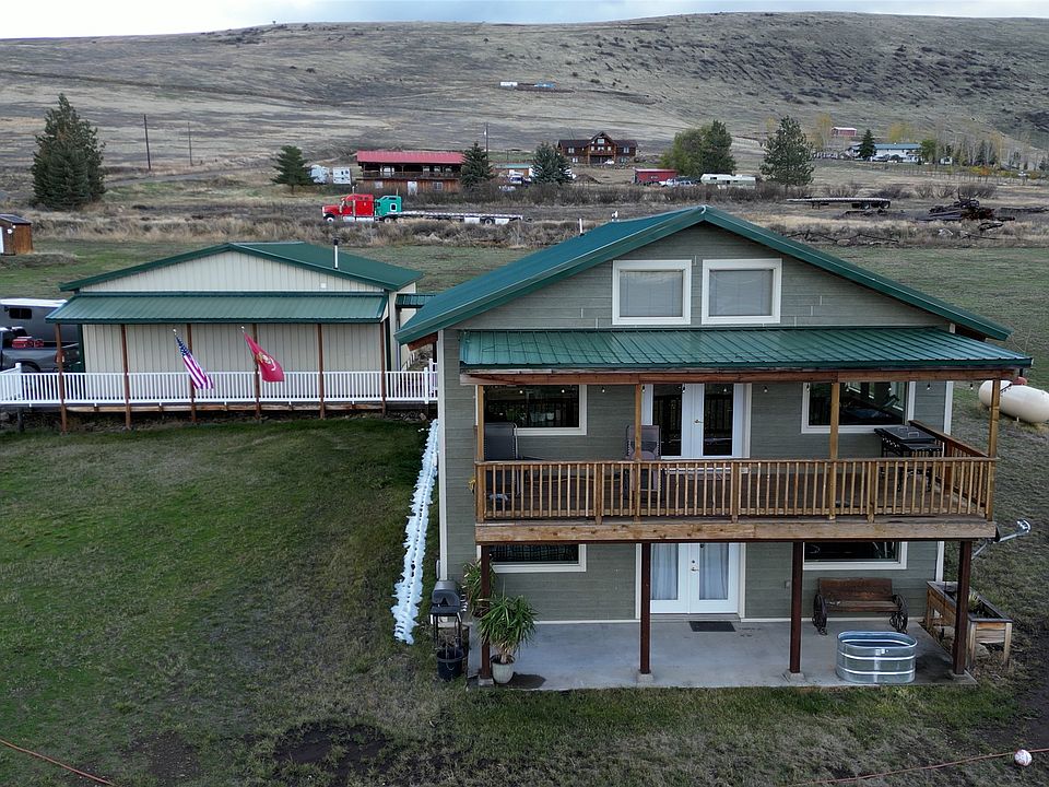 Enjoy rural country living on 5 acres, in a quiet area, just 5 minutes to the town of Plains and a hospital. Park in the oversized 30 x 34 garage with an additional lean-to and take the covered sidewalk into this spacious 2400 sq ft two level home. It has 3 bedrooms, 3 bathrooms, and an open concept living/dining room/kitchen with vaulted ceilings and stunning wood beams. This open, airy room has French doors that open to a large, covered deck that captures sweeping views of the valley and surrounding mountains. The daylight basement has a large open living room with a kitchenette area with sink. There is a bedroom, full bathroom, laundry area, and extra storage. The lower French doors open to a large yard, perfect for pets. Behind the garage is a chicken coop ready for your feathered friends. This area is known for abundant wildlife and sits up on a bench above town and the Clark Fork River. Enjoy great hunting, fishing, & all outdoor recreation from this great vantage point.