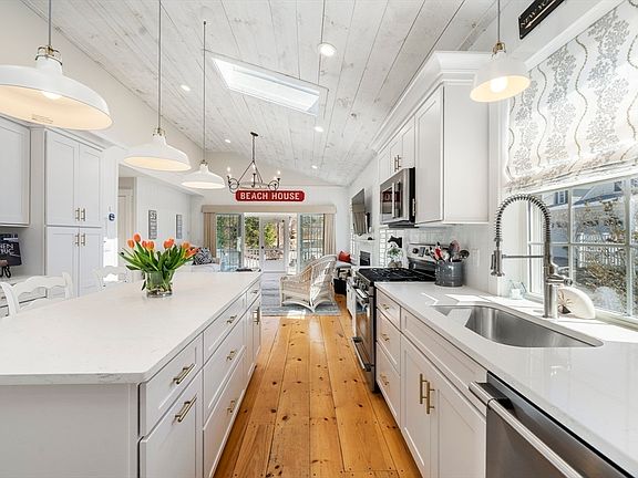 - Features: Skylight, Cathedral Ceiling(s), Flooring - Wood, Dining Area, Countertops - Stone/Granite/Solid, Kitchen Island, Cabinets - Upgraded, Open Floorplan, Recessed Lighting, Stainless Steel Appliances, Gas Stove, Lighting - Pendant, Lighting - Overhead