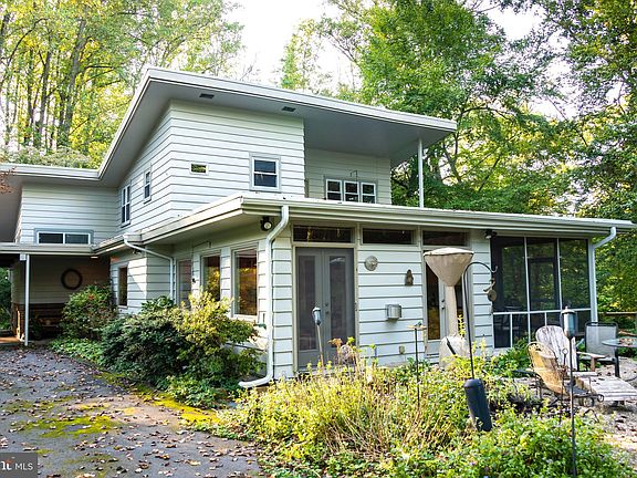 Rare offering of a secluded 3543 sq ft. mid-century modern home backing to 2.7 acres of wooded splendor, next to Fieldstone Golf Course. You will enjoy watching the home’s wooded valley view evolve thru the seasons. The home’s spacious kitchen is a delight for cook and guests alike. Its features include a 5-burner gas cooktop, handsome soapstone counters and workspace extending 33ft to include the generously windowed informal dining area, wet bar, gas FP and sitting/ TV area - all ready for your morning coffee. The parquet hardwood kitchen floors unite with the beamed-ceiling, parquet floored great room with its wall of windows and view of the wooded valley - all accented by recessed lighting. A massive wood burning raised hearth FP dominates the room in cool seasons while a screened porch off the DR opens onto the spacious patio & side yard in warmer seasons when entertaining can also spill out into these areas. One half-flight of steps from the main floor leads to 4 moderately sized bedrooms and 2 full baths. Each of the two adjoining bedrooms have non-load bearing walls which may be removed to create a larger room. A half-flight higher leads to the vaulted master suite, large master bath with vanities and shower room. Of note is the view from two walls of windows and the roof access for star gazing on special nights. Also on this floor is a private office. A half -flight of steps down from the main level is a cozy den/tv room with a Jotul wood burning stove. This room also offers a queen sized Murphy bed and an exterior door to a second small patio with FP. This level includes a large laundry/storage rm, an additional BR with a cedar closet and another full bath. The 2-story 4 car garage is a hobbyist’s dream while for day to day convenience, a carport is ideal. Walk the circular trail down to the stream and back for a dose of natural bliss. Only 15 mins from downtown Wilmington, this oasis lets you relax or entertain in nature’s calm and with complete privacy. Property offered in AS-IS condition. Inspections for informational purposes only.
