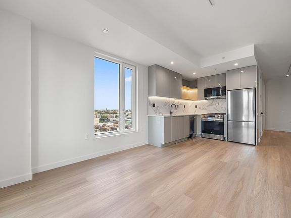 Quietly refined and filled with light, this twobedroom residence at The Seren opens to an expansive, openconcept living area framed by floortoceiling windows. A private balcony extends the home outwardmade for slow morning coffee or an easy evening unwind. The designer kitchen is streamlined and functional, with stainless steel appliances, a dishwasher, and sleek cabinetry. In the bedroom wing, generous closets keep everything tucked away, while the spainspired bathwith contemporary fixtures and a deep soaking tuboffers a calm reset at day's end. Everyday comforts include an inunit washer/dryer and central heating and cooling, all within a boutique new development along Greenpoint's waterfront.