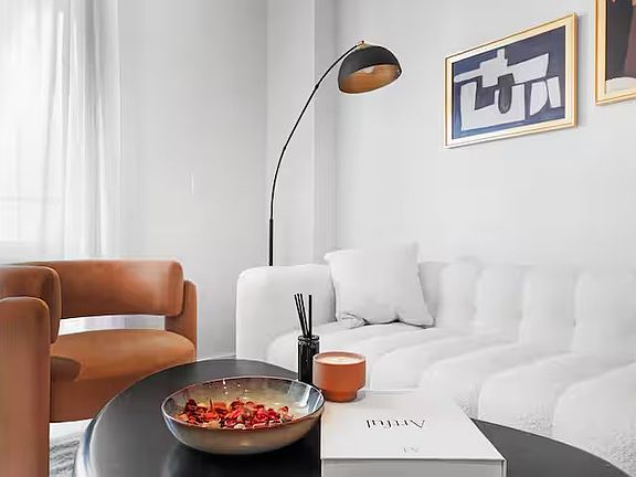 Floor-to-ceiling windowsWarm cozy color palettesOffice nookBreathtaking north-east viewsPrivate balconyIconic manhattan skylineSleek marble backsplash