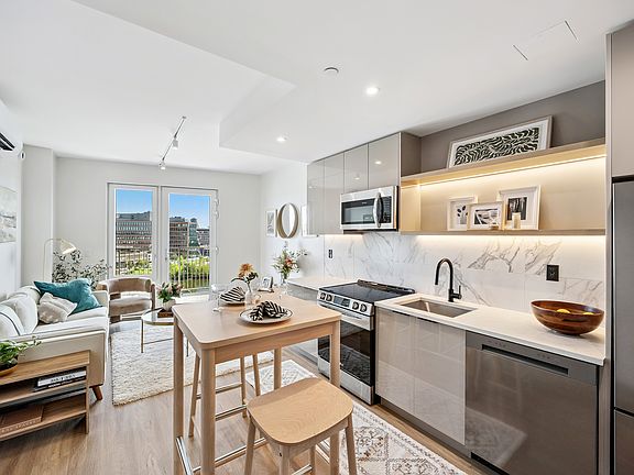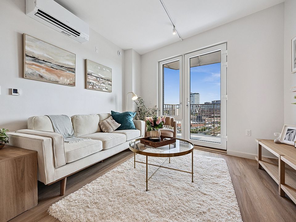 A warm, quietly refined 1-bedroom at The Seren, this home pairs an expansive openconcept living area with floortoceiling windows that fill the space with soft, natural light. A private balcony extends your daily rituals outdoorsmorning coffee, an unhurried read, or fresh air at dusk. The designer kitchen features sleek cabinetry, stainless steel appliances, and a dishwasher, while a spainspired bath with a deep soaking tub offers an easy winddown at day's end. A spacious bedroom with a large closet, inunit washer/dryer, and central heating and cooling complete a calm, elegant settingjust steps from Greenpoint's waterfront.