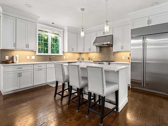 Tucked away on a quiet sought after neighborhood, just steps away from the Wedgemere Station and Winchester Center, this meticulously maintained 5-bedroom home built in 2018 perfectly blends modern design with refined details, including beautiful coffered ceilings, wainscoting, chair rails, and crown moulding. The 1st floor offers a formal living room, a spacious family room with a fireplace, a gourmet stainless steel kitchen with an expanded dining area, a formal dining room, and a versatile office/guest bedroom with a full bath. Upstairs, the primary bedroom spans front-to-back, featuring 2 custom closets, a spa-like en suite bath & a sitting area. 3 additional bedrooms, a laundry room, and 2 full baths complete the 2nd floor. The 3rd floor provides a bonus room and attic storage, while the finished LL offers a playroom, gym, and a half bath. With an ideal location and luxurious finishes, all you have to do is move in to start enjoying all of Winchester's restaurants and amenities!