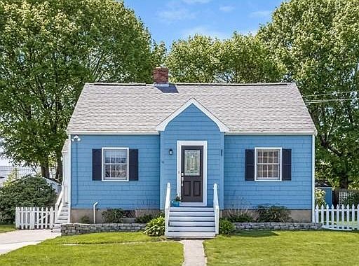 Wonderful opportunity to buy move in ready ,nicely presented Cape located in a quaint neighborhood super convenient to High School ( and soon to be Brand New Middle School!), shopping,transportation,highway,Cummings Center and parks.This lovely home is perfectly sited on a flat lot with beautiful fully fenced yard featuring shed for storage . First level has great flow and is highlighted by nicely appointed kitchen which opens to DR and generous LR with hardwood and FP, Office/Den could also be a 4th bedroom if needed, bedroom 3 and attractive full bath. Master and second bedroom on level 2 w/bamboo flooring flank a 1/2 bath with granite countertop.Newly painted exterior, heat system newly converted to gas (Trane), tankless high efficient water (Rinnai) and an insulation update , are a few of the recent upgrades to make this home stand out from the rest. Nice doors great guests at both points of entry and side porch entry boasts two stairways...one from driveway ,one into yard.