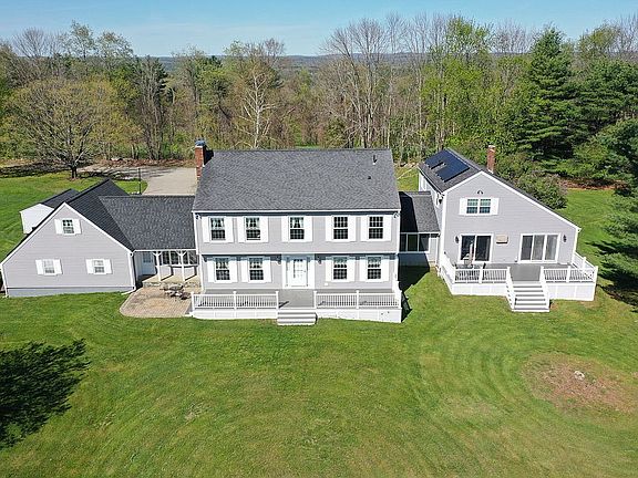 Welcome to 16 Windy Ridge. Located on a private dead end road this beautiful colonial sits on over 6 acres in beatiful Charlton. This unique property is two complete homes connected by a heated sunroom / breezway. The main house is four bedrooms with 2.5 baths. it offers a beautiful family room with fieldstone wood burning fireplace, a huge kitchen with breakfast area, ceramic tile floors and granite counter tops, large dining room with hardwood floors, formal living room, Huge master bedroom with master bath, 3 nice sized additional bedrooms, a fnished lower level media / family room , and a 2 car garage. The exterior offers over 6 acers of yard for privacy, a Koi pond, a finished barn, above ground pool with deck, 3 huge decks on both the front and back of the house for relaxing or entertaining, and tons of parking. The finished barn is heated and is currently used a a rec room and home office. It was previously an artist studio. The In-Law/ Guest House offer two bedrooms with 1 full bath, and amazing living & dining rooms with cathedral ceilings. The kitchen offers granite counter tops & ceramic tile floors, two bedrooms located on the 2nd floor,. This also has solar panels that are owned and not leased to eliminate electric bills and provide income every year. Address is Windy Ridge but property goes all the way down to King Rd. Would make a great equestrian propery!