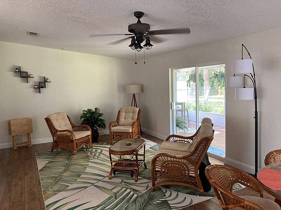 This is a beautifully updated 2-bedroom 2 bath home. The master is large enough for a king size bed, large walk-in closet and nicely remodeled bathroom. The kitchen has been totally remodeled with custom cabinets, quartz counter tops and stainless steel appliances. Beautiful wood laminate floors throughout installed in 2019. Electric tankless water heater. Roof 2017. AC 2024. Enjoy the extra-large screened porch with great views of the woods with lots of privacy. All appliances included. Furniture conveys with acceptable offer. Insulated garage! The monthly lot fee includes Wi-Fi, cable TV, lawn care, and all resort style amenities. Come join us in this upscale 55 plus community. Plantation Oaks Residents have unlimited use of our beautiful clubhouse and all the amenities including a heated Olympic-sized pool, hot tub, tennis/pickle ball courts, firepit gathering area, shuffleboard, dog park and more. Our affordable monthly fee includes lawn mowing, edging at the street and driveway, we provide irrigation water for the lawn, fertilize the lawn twice a year, curbside trash, bulk and recycle pickup. Cable TV and Internet service through Spectrum is a bulk rate that has been discounted for all the Plantation Oaks residents. The Cable package currently includes about 250+ channels, 3 HD receiver boxes wireless modem and router. We are a pet friendly community with two fully fenced dog parks. Plantation Oaks is a gated land lease community with an attendant 24/7.