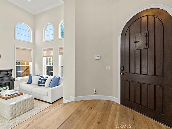 Welcome to 16 Wyndham Street, an exceptional residence nestled in the heart of Ladera Ranch. This beautifully remodeled Wyeth Plan 3 showcases expansive, thoughtfully designed interiors with 5 bedrooms — including a main floor ensuite — plus a versatile loft and bonus room, offering the perfect blend of comfort, functionality, and elevated style. Freshly painted inside and out, the home showcases engineered wood flooring, designer lighting, and custom window treatments throughout. The stunning chef’s kitchen is a showstopper with luxurious Cambria quartz countertops, an expansive center island, custom soft-close cabinetry, and premium stainless steel appliances including a Sub-Zero refrigerator. The adjacent breakfast nook features a built-in wine fridge, illuminated display shelving, and custom wine bar cabinetry. The open-concept great room includes a custom fireplace mantle, built-in cabinetry with lighted shelving, wainscoting, and dramatic 15-foot bifold doors that seamlessly connect to the oversized backyard — perfect for indoor-outdoor entertaining. Upstairs, a private staircase leads to the luxurious primary suite with dual sinks, vanity, two walk-in closets, and generous linen cabinetry. A second staircase brings you to the spacious secondary bedrooms and a well-sized loft. Additional upgrades include fully paid solar panels, PEX repipe, whole-house water filtration, and new custom wood garage doors. The main floor laundry room features a utility sink and built-in cabinetry. The expansive backyard is a private oasis with mature landscaping, a built-in BBQ, and an outdoor dining area. Enjoy close proximity to award-winning schools and the resort-style Oak Knoll Clubhouse, with pools, splash pad, and access to Ladera Ranch’s numerous parks, trails, and amenities. This remarkable home offers a rare opportunity to enjoy refined living in one of Ladera Ranch’s most sought-after neighborhoods.