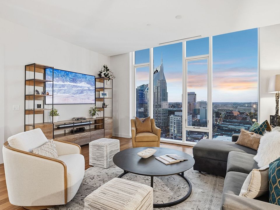 Experience modern luxury in this exceptional one-bedroom, one-and-a-half-bath home showcasing sweeping views of the downtown skyline, Cumberland River, and Titans Stadium. Perfectly positioned in the heart of Music City, it offers unmatched access to Nashville’s best dining, entertainment, and cultural landmarks, including Bridgestone Arena, the Ryman Auditorium, and the Schermerhorn Symphony Center—all just steps from your door.