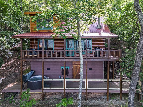Tucked away between the popular mountain towns of Ellijay and Blue Ridge, you'll find this cabin situated on 2.78 acres. The Mountain Views are breathtaking. It's well adorned with tasteful furnishings and decor. The counter tops are granite and the appliances are stainless. The hot tub is perfect for relaxing while under the starry clear mountain skies, or enjoy a fire around the stone fire pit. It's close to restaurants, shopping, Lake Blue Ridge, and the Appalachian and Benton MacKaye hiking Trails. The cabin is a very successful rental! Catch spectacular long-range sunsets, year-round, from this authentic Log Cabin. Situated in Cherry Log Mountain, less than 1/4 mile from the Benton Mackaye Trail, and beautifully expanded to capture the views from the master bedroom, sitting on a gentle sloping 2.78 acres of beautiful woodland with deer wandering below the deck every afternoon. You can spend your afternoons on the swinging day bed, evenings in the hot tub watching the stars. This home is turnkey and a fantastic rental. Bring your toothbrush, and you have a new home. Expanded and updated in 2023.