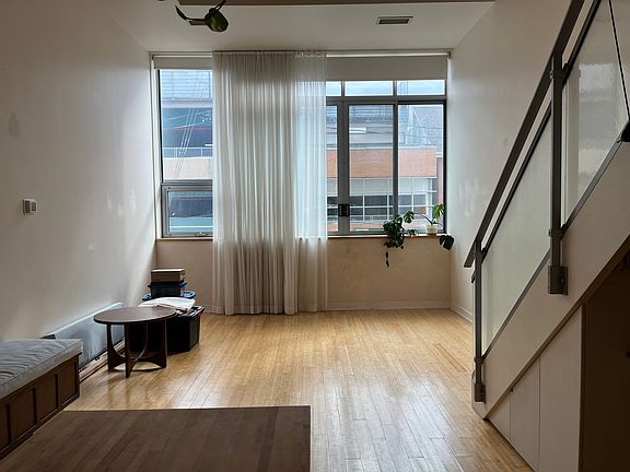 The unit is super quiet, with concrete floors between units so no footsteps above, no broomsticks on the ceiling. No nearby bars means a quiet street at night. Open the windows from this second floor apartment and feel the energy of the bustling Market throughout the day. Tucked within the converted school buildings is a secret courtyard with a perennial garden and BBQ.