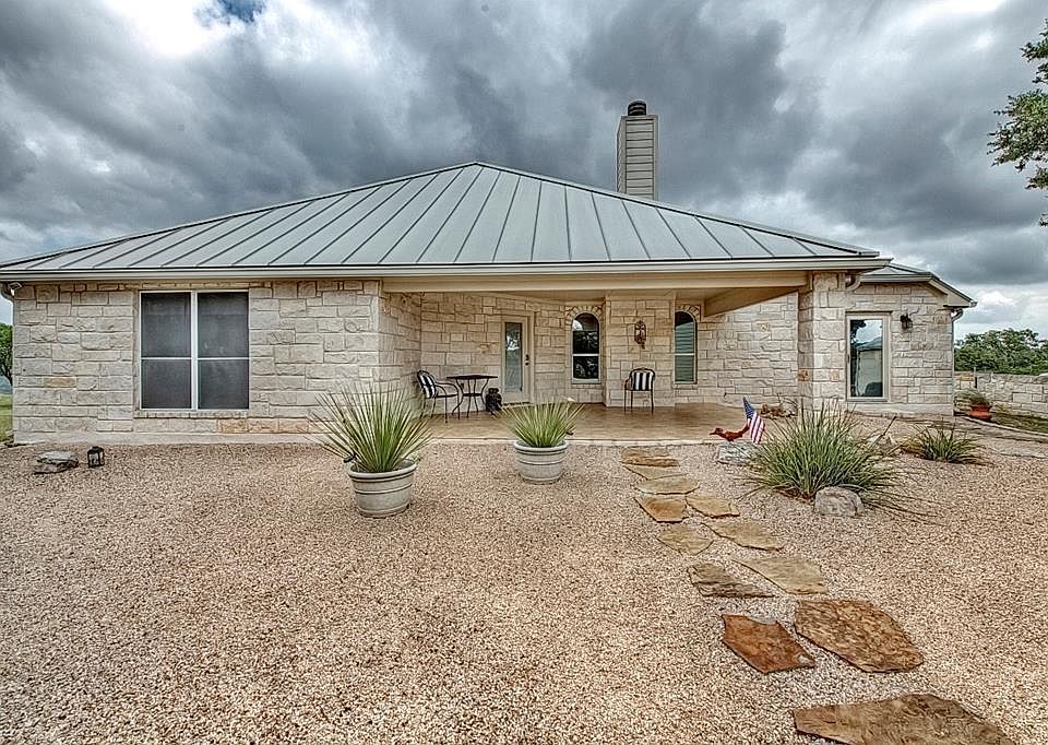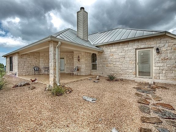 Custom Build home with Hill Country views, privacy, no HOA, no restrictions and no city taxes.Open living wired for surround sound. Large kitchen with dual fuel cooking, oak cabinetry, slate back splash and walk in pantry. Master bed has its own wind of the house. Master bath boast wall of vanity lighting & walk in shower. Guest bedrooms offer walk in closets & bath offers over-sized vanity w/ T&S combo. Granite counters throughout. Covered patio to enjoy breezy afternoons, you will also find an over-sized 2 car detached garage. Nearly 22 acres of pristine unrestricted gorgeous scenery!