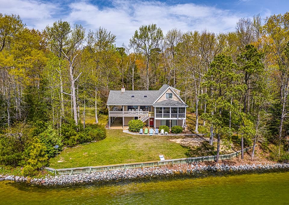 Pack your bags for summer and head to the River. This river cottage is located on an awesome river site with wide water views all the way to the White Stone Bridge with the best "southern exposure" for great summer breezes. The shoreline is protected with bulkhead and rip rap for double protection. A sandy shoreline is perfect for water play and launching your kayak or paddle board in addition to very nice dock with boatlift. This get-away cottage is being sold "turn key" with the exception of marked items. Ideal screened porch off kitchen, wrapped covered porches starting on waterside and wrapping around to front door is ideal for enjoying the outdoors. The raised cottage style offers raised main and second floor levels in addition to lower level with family/rec room with outdoor brick patio, full bath (great coming from outdoors), laundry/utility room & garage for water toys and fishing supplies. Spacious areas for family and friends. Cottage is situated on a private lot with 2+- acres. Nice private neighborhood of waterfront homes on large size lots that affords everyone great neighbors but privacy. In the last several months this home has had a "face lift" including foundation repairs, repairs to porches and railings, painting, new brick patio, new heat pump, new hot water heater and more. This cottage is in "move-in/furnished condition." Come for a tour and you'll want to stay. Water depth at dock to be measured by buyer to their satisfaction.